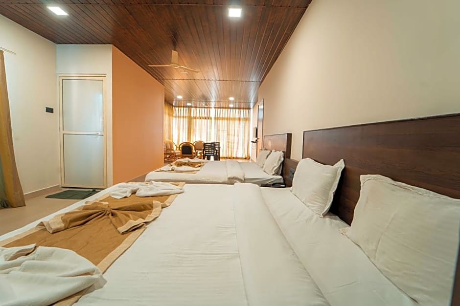 This room has a family room consists of of 1 air-conditioned room and 1 fan-cooled room with a common bathroom. It includes a flat screen TV, free toiletries and running hot/cold water.
